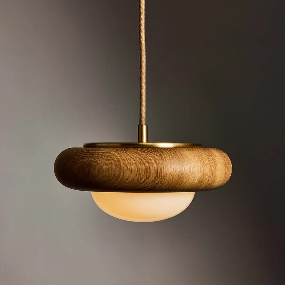 A modern re-interpretation of a 1920’s light. Hand-spun metal shades are finished in bronze and brass. Holes in the brass spinning allow light to glow within the bronze spinning creating a warm glow. The opal glass diffuses the light evenly.