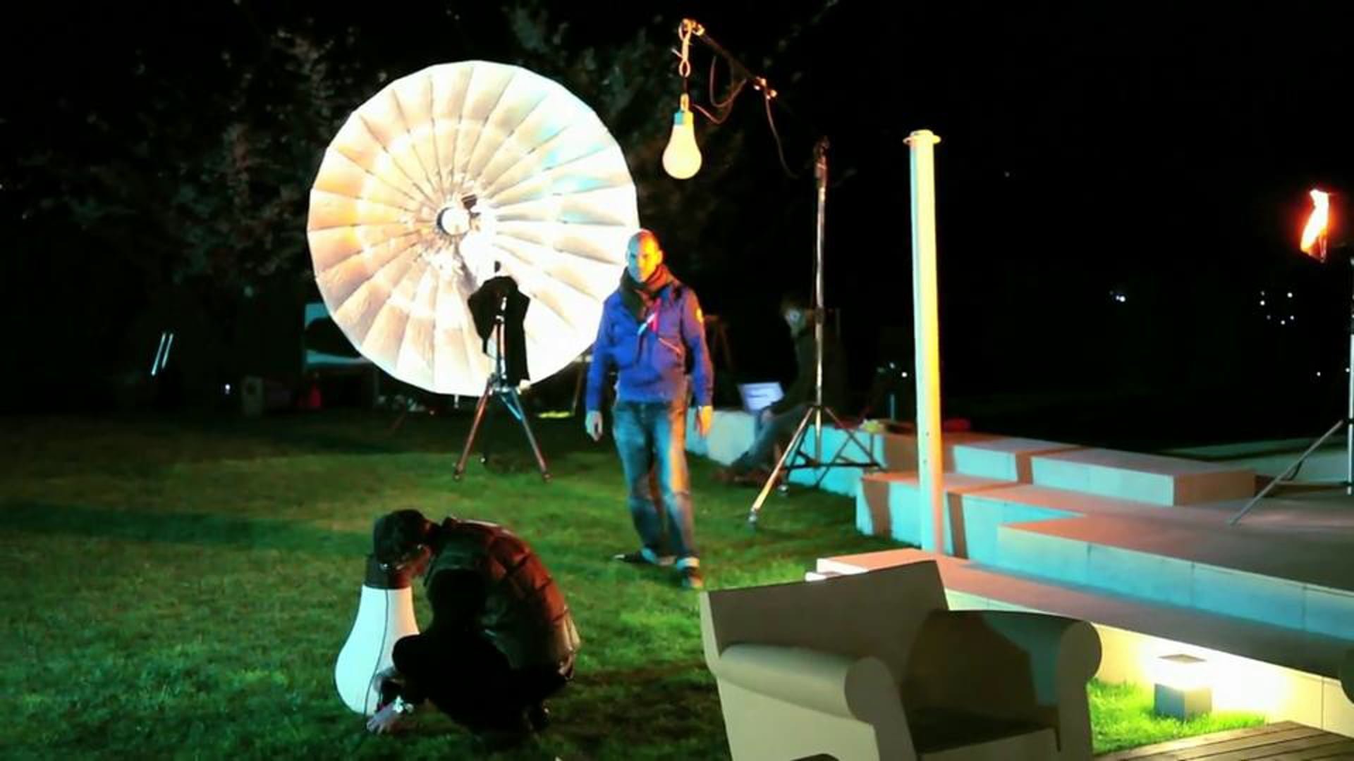 Decorative portable/suspended lamp. Polyethylene structure with satin white emitting unit and colour closing screw-on cap. Anti-loosening system. IP44 protection rating. This luminaire is equipped with a 5000mm black neoprene cable, a CEE 7/17 plug (schuko compatible) and a Velcro strap to coil the cable up or to be wrapped around the handle for a quick fixing as suspended lamp.