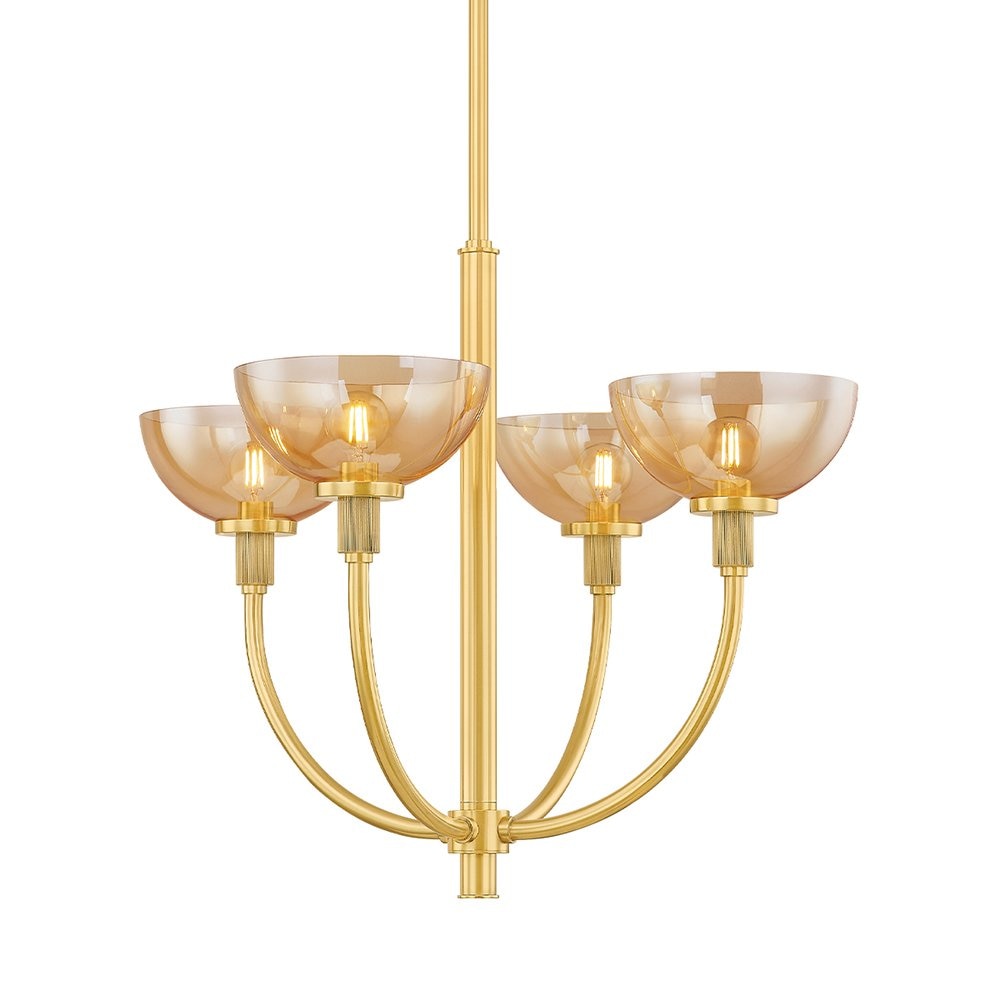 Cool contrast and fine form play well together in Belle's striking silhouette. The aged brass frame pops against the glossy white shades, featuring exposed bulbs for a futuristic effect. Available as a chandelier, linear, 1 or 3-light wall sconce, and floor lamp.