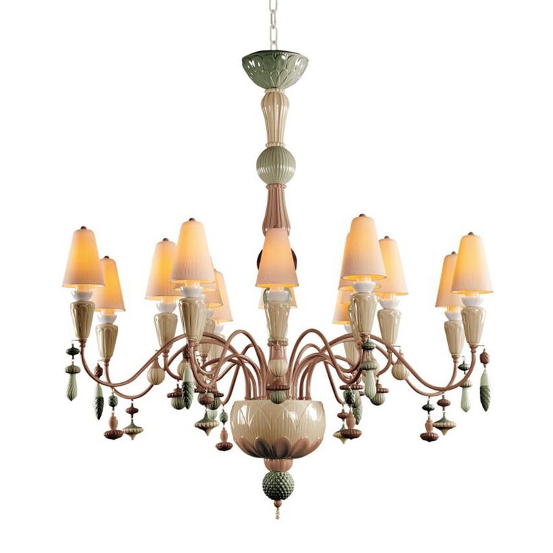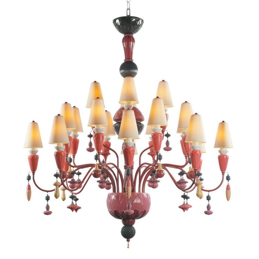 Beauty of the Night. Such is the name of the plant whose petals reflect the moonlight, thus acquiring the magical property of glowing in the dark. This striking species provides the inspiration for the Belle de Nuit lighting collection. Classic chandelier lamps are reinterpreted through the unique language of porcelain.
