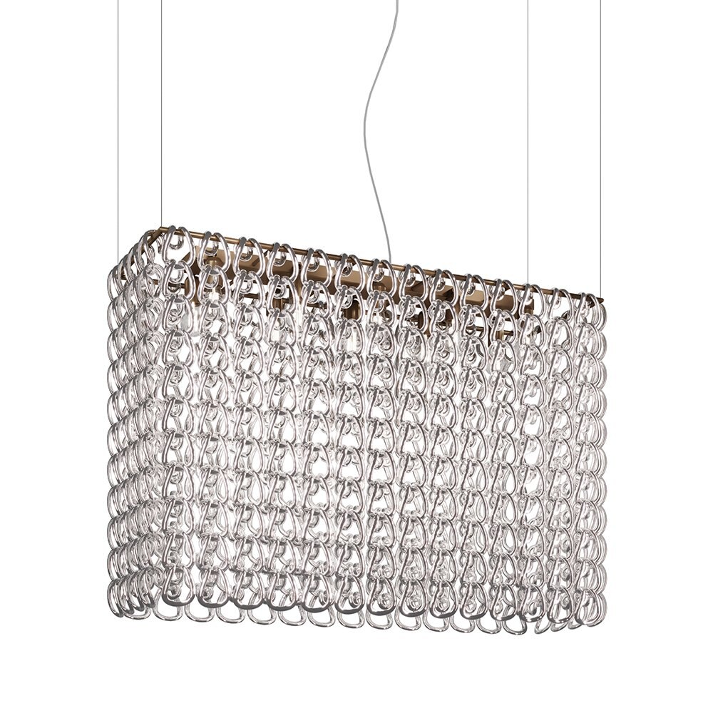 Diadema is a lighting system based on a single element, the rod of pure glass. It takes advantage of the way it reflects and transmits the light, while offering a sense of movement by using rods of different sizes. The metal body allows to offer multiple variations and ample space for custom-made versions with concealed metal body, thanks to the fixing system developed for this collection.