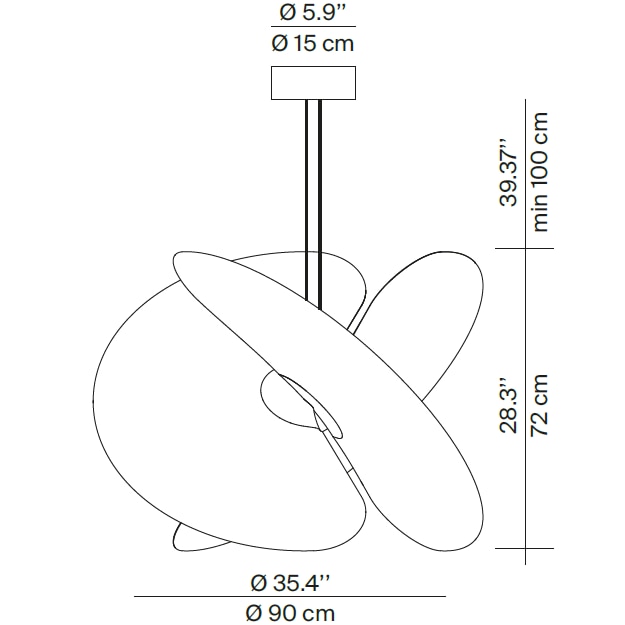 Levante (the name suggests lightness and wind, but also a clear reference to oriental aesthetics) stems from the intersection of three large fans, made in an unprecedented material for the design sector, borrowed from the world of food, with an appearance similar to rice paper, to spread light in a uniform way over surfaces.