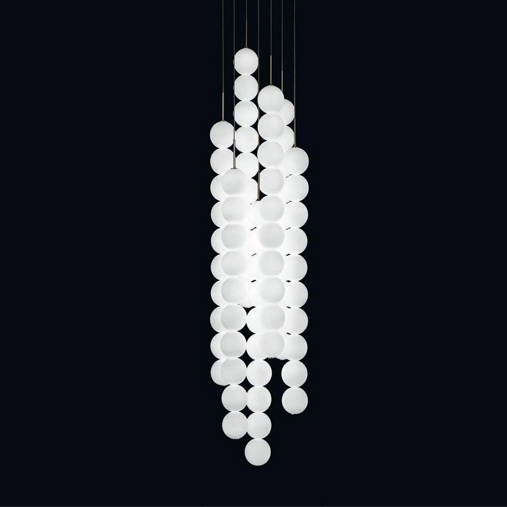 Standard 28s are made with clear glass exterior spheres and milk white interior lamp holder cavities. 28s are possible with infinite versatility in colour compositions, sizes and shapes.