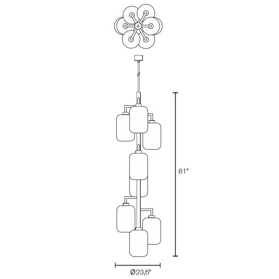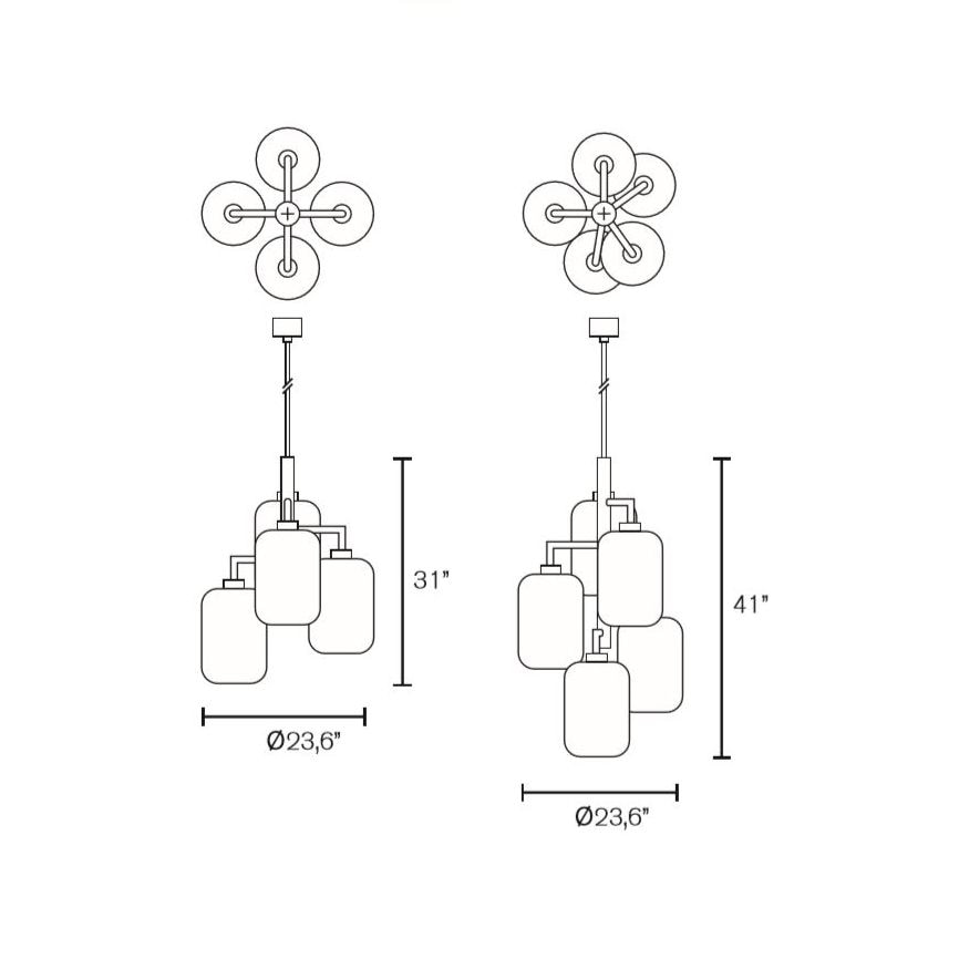 With almost carefree delight, William designed his latest collection: Louise. A simple frame, decorated in a pleasing rhythm with glass lanterns. A hint of chaos, never far away in designs from William Brand, is present: the different colours and positions of the glass lanterns have a joyful effect.