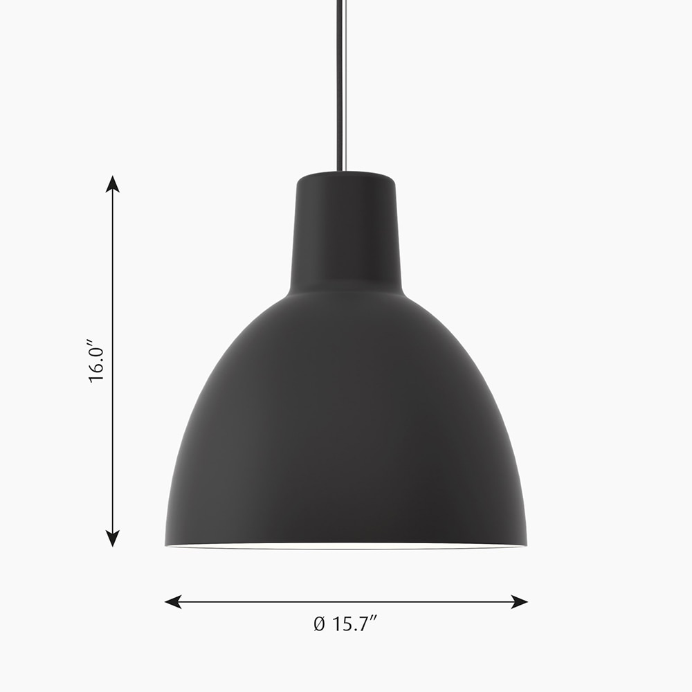 The pendant emits soft downwards directed light. The matte, white-painted inside of the elliptical shade helps to assure even distribution of the light.
