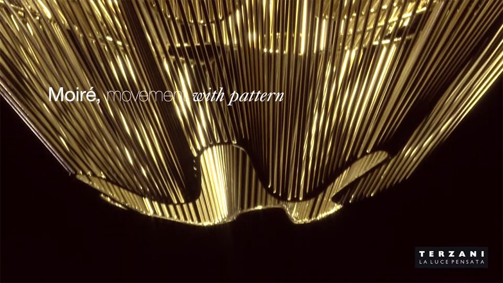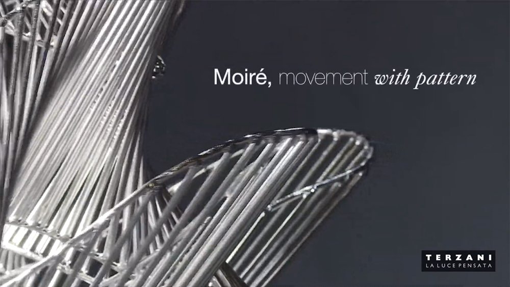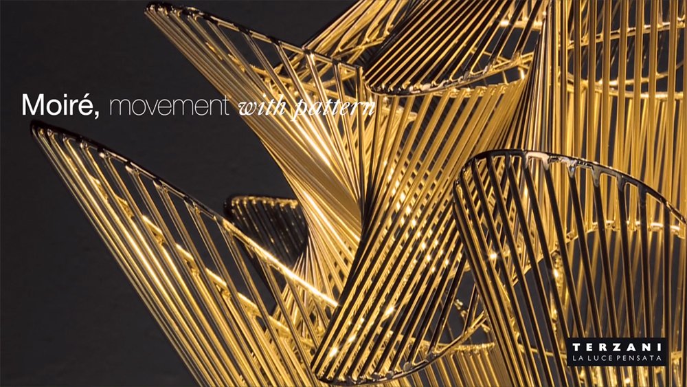 A French term derived from silk with a rippled or “watered” appearance, moiré is an optical effect that results in the illusion of waves or the movement of water. This effect is achieved by having an opaque, ruled pattern overlaid over another. Designer Christian Lava’s studies of this effect have led to his latest design aptly titled, Moiré. Using overlapping grids of metal, this LED pendant light dynamically changes shape following the viewer’s gaze, practically coming to life with a vibrating energy. Available in multiple configurations, Moiré is a mesmerizing addition to any room. Design Christian Lava.