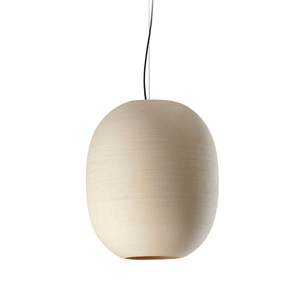 Part of the Nelson Bubble Lamp series, the Nelson Cigar Bubble Pendant has the rounded shape of its namesake, with clean parallel lines accentuating its spherical silhouette. The lamp comes with a steel ceiling plate, which allows it to it delicately float overhead. George Nelson designed the Bubble Lamp series in 1952.