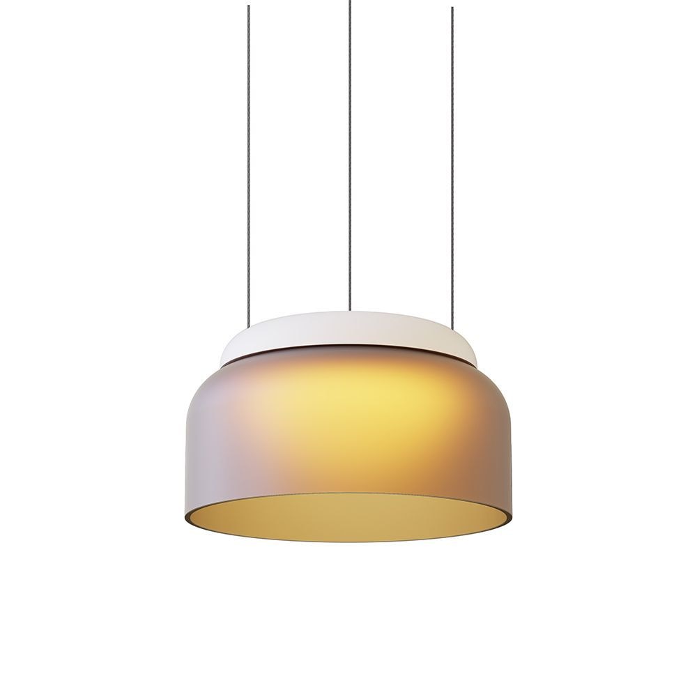 A unique detail of the Ronde Pendant is the opening on the top with an overhanging collar that reminds of a jar such as a vase or an amphora. The mainly downwards directed light from conventional pendants does in this design also spread out of the spout-like opening and casts a smooth light gradient at the wire and ceiling. The hand-turned aluminium lamp shade with an ultra-matt lacquer almost makes it look as if it was made of ceramics.