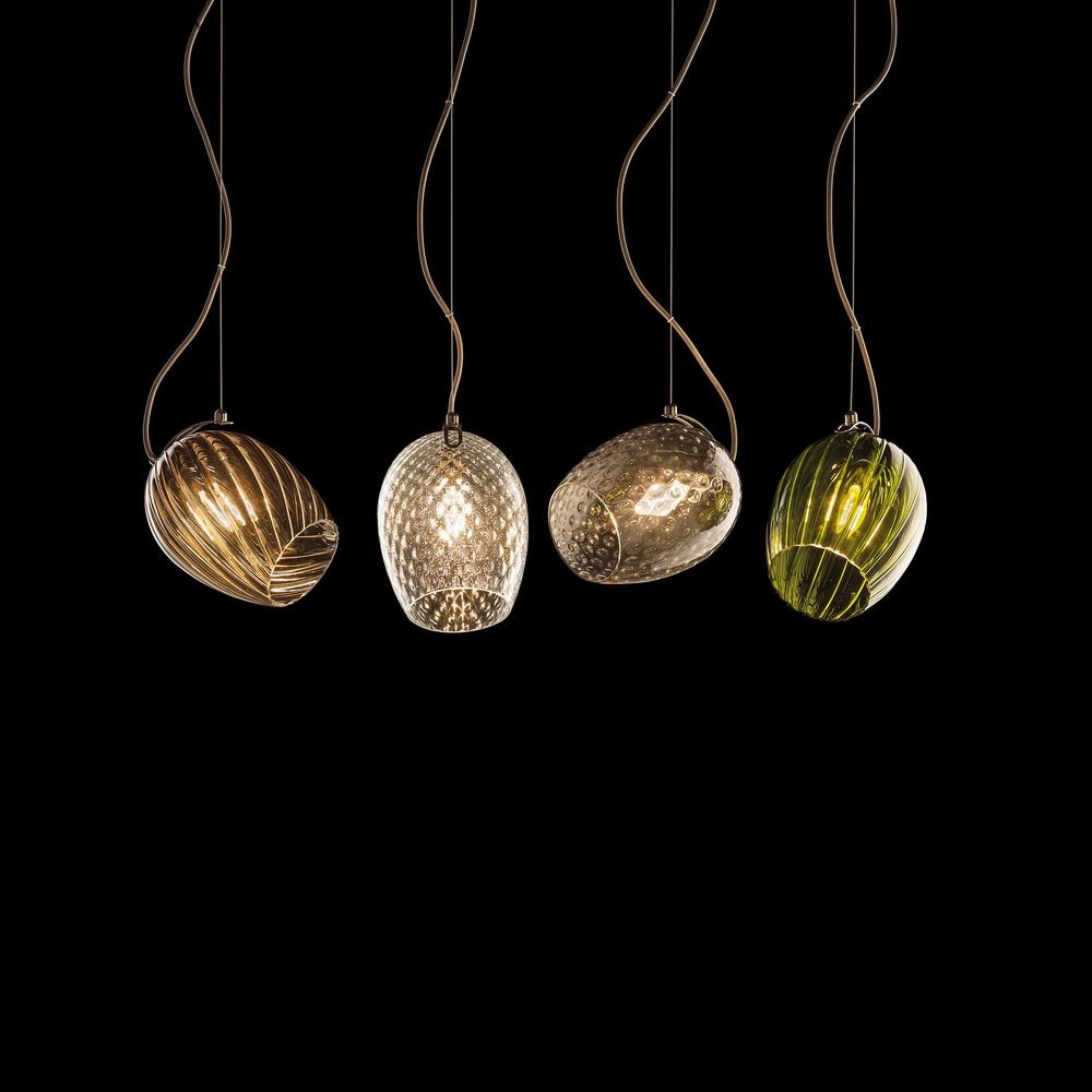 The Rosè Linear Multi Light Pendant offers a chic, versatile design, featuring five tulip shaped blown glass diffusers suspended from a linear canopy. The glass diffuser are available in Transparent glass and Chrome or Shiny gold metal finish. Rosè gold, Gold or Titanium shiny coating glass with Iron Grey metal finish.