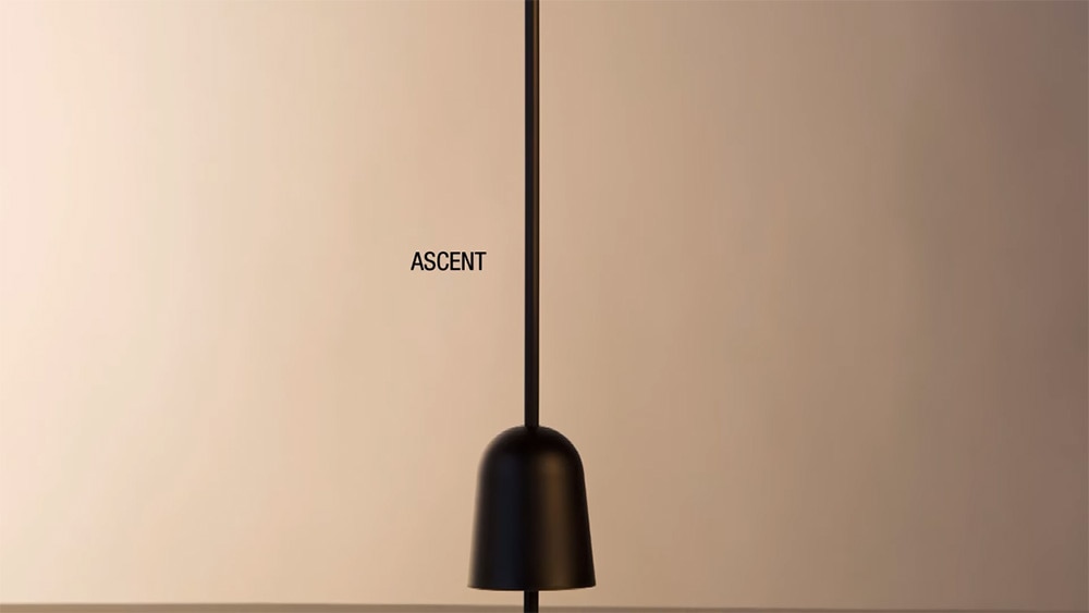 Intimate, conceptual, Ascent provides infinite shadings of light intensity, thanks to the very precise axial dimmer controlled by electronics mounted inside the shade. Circuits on the stem send input to a microprocessor that reacts to the vertical movement, adjusting light flow.