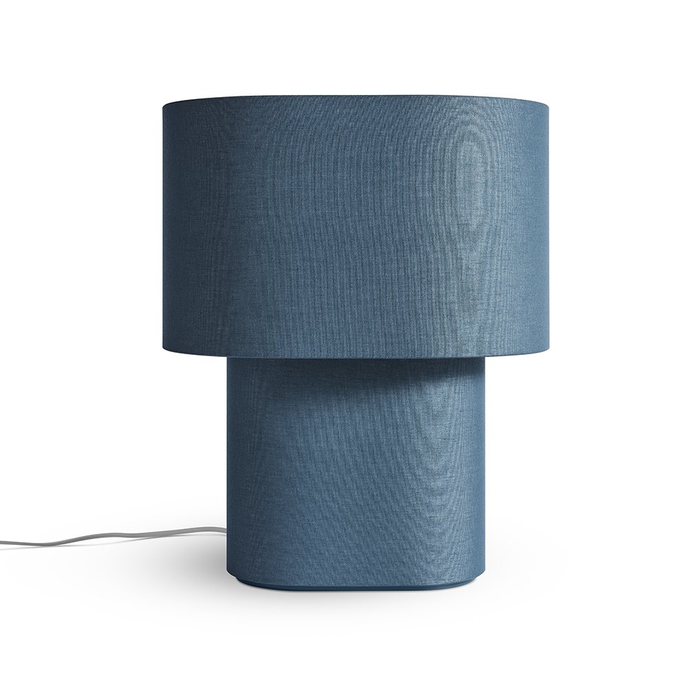 The idea was to create a lamp with a narrow plan dimension to be placed on a shelf or a shallow piece of furniture but without losing an important frontal view, its diffusing lampshade giving warm and pleasant illumination.