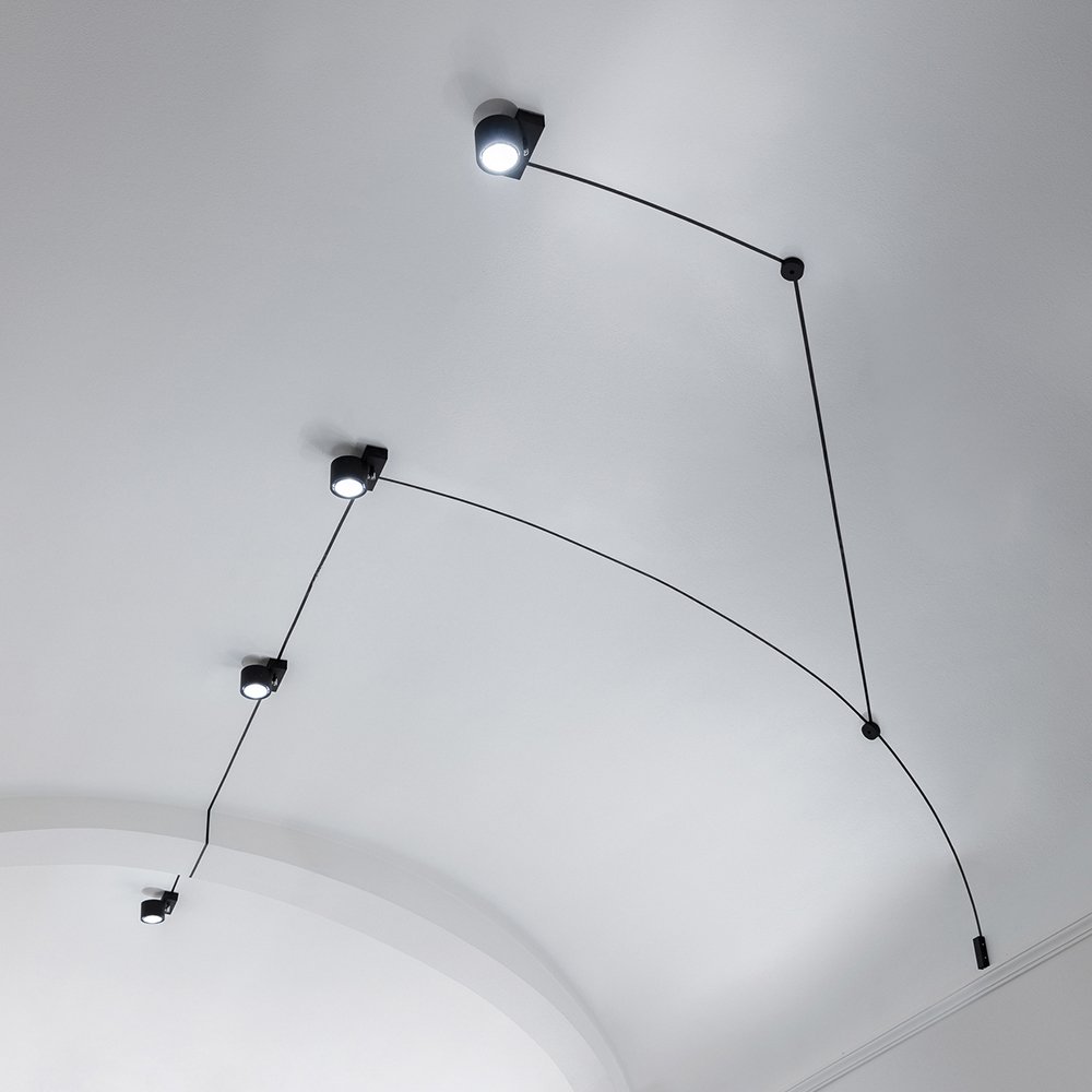 As the foundation of a system, however, it becomes a replacement for track lights, using its own cable to evoke track lighting, but with a sense of freedom and creativity most track lights cannot achieve. With the addition of a Davide Groppi Wall/Ceiling Rose accessory for power, Trick Track is designed to support multiple heads (consult your local safety codes for your maximum permitted number of lights on a single installation), making it a perfect feature lighting solution for any modern home, office, or retail space.