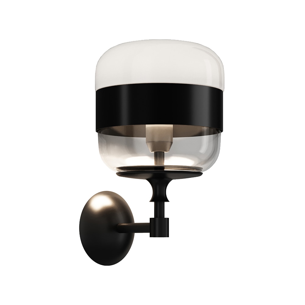 The Amp wall lamp follows a simple construction of a glass shade slipped over a marble base. It comes with a canopy in powder coated metal and is delivered with a 2-meter power cord. The Amp wall lamp can be installed directly to the power outlet (hardwired) or using the power cord included.
