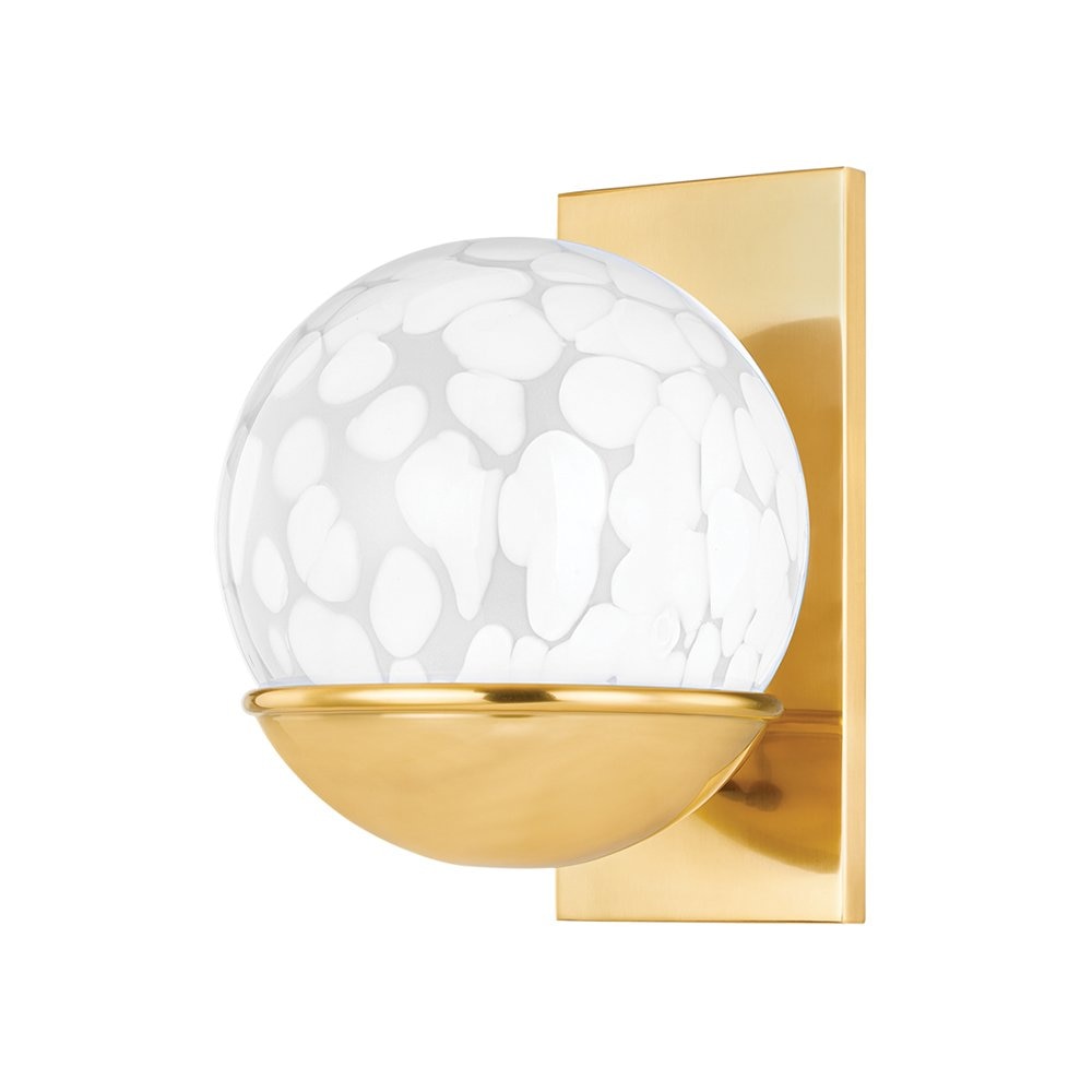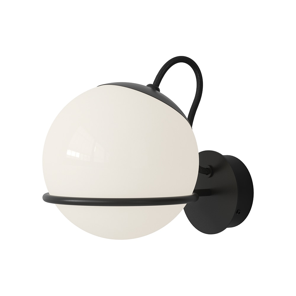Decorative wall lamp consisting of an opal glass sphere and metal components. Available in two versions: diffused light (1L), or diffused light and adjustable beam for reading (2L).