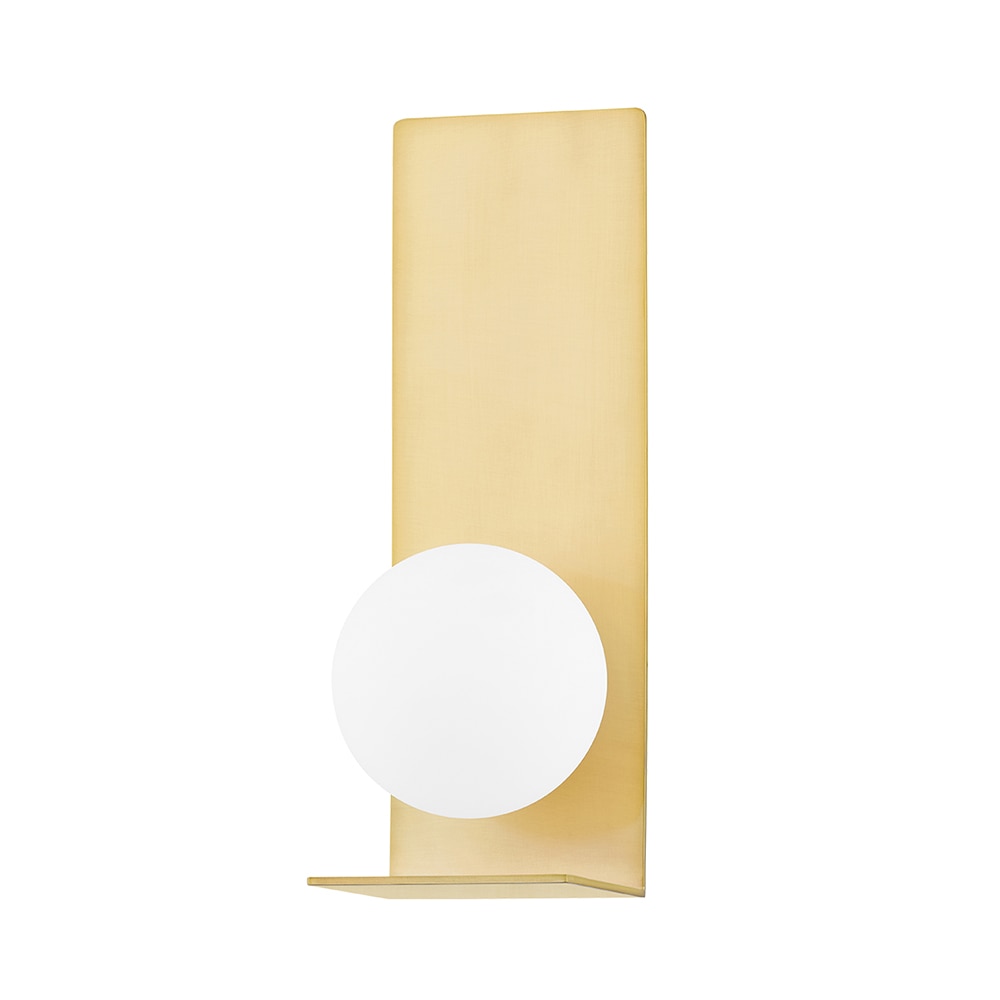 The Orbel Collection by Sean Lavin is inspired by Mid-Century modern art with contrasting geometric shapes. The Orbel Wall Sconce features an elongated metal rectangle that supports a frosted sphere of light. Designed at 13in high and offered in modern finishes, the Orbel Wall Sconce is a beautiful fixture to line your hallways or illuminate any room setting. Coordinate your design with other fixtures in the Orbel Collection, such as the Flush Mount, Bath Light and Pendants. Lamping options are compatible with most dimmers. Refer to the Dimming Chart for more information.